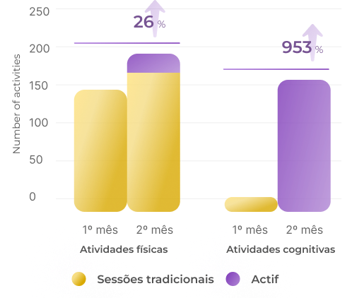 With over 10,000 custom activities, ACTIF offers unlimited access to physical and cognitive exercises adaptable to intensity and format. Each activity is adjusted to the specific profile, interests and needs of each user, ensuring the best possible experience. We use real data to track evolution and measure the impact of each exercise, providing more effective and directed care.